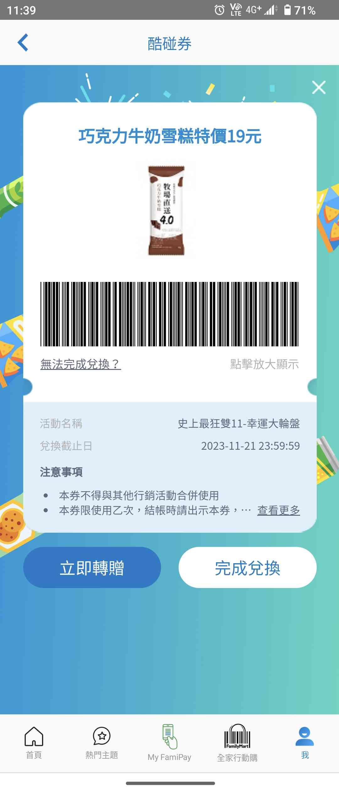 推 dengzhe: 抽到巧克力雪糕去買覺得好好吃!免運券也不錯 11/06 09:16