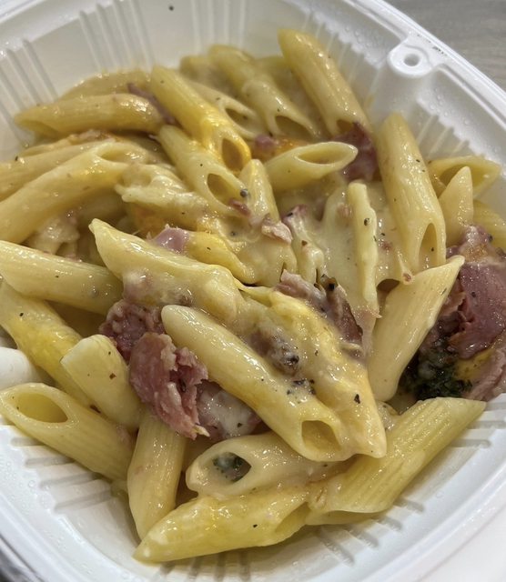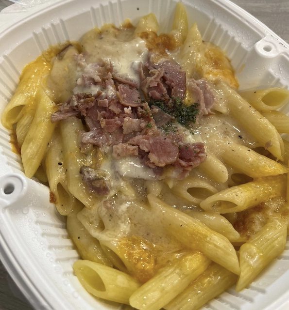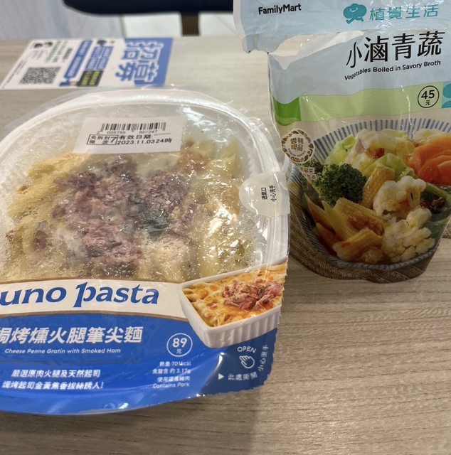 【商品名稱/價格】:焗烤燻火腿筆尖麵89$/小滷青蔬45$