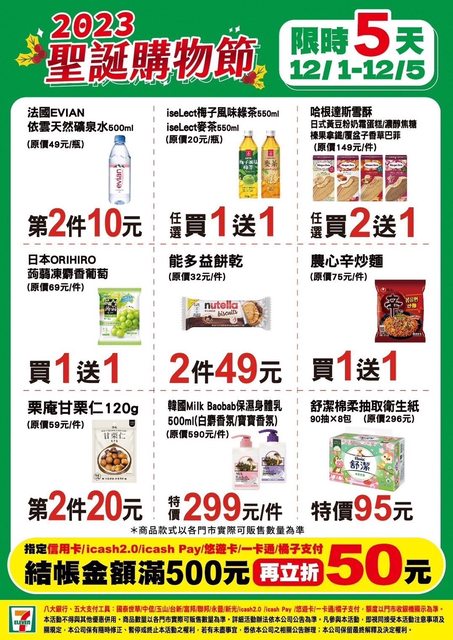 2023/12/1~2023/12/5 聖誕購物節 只有5天