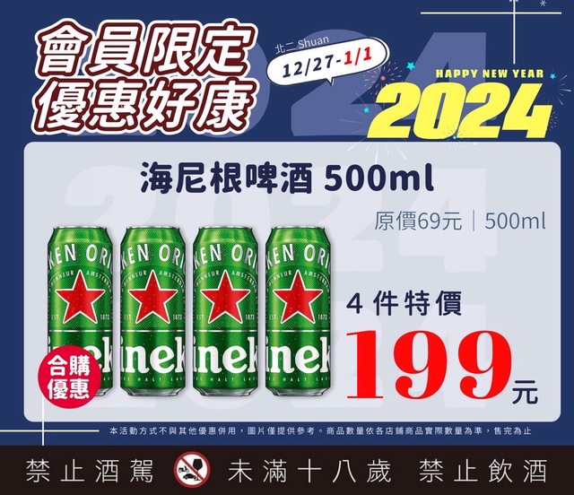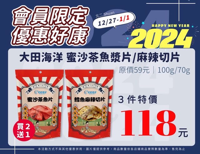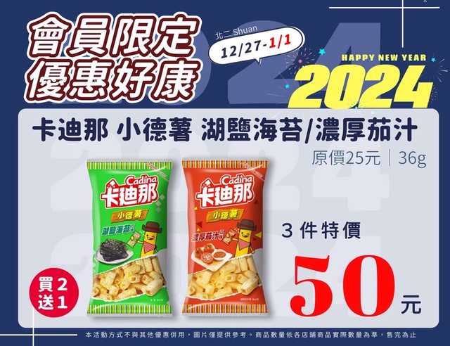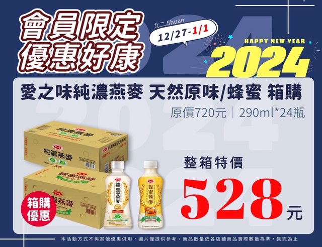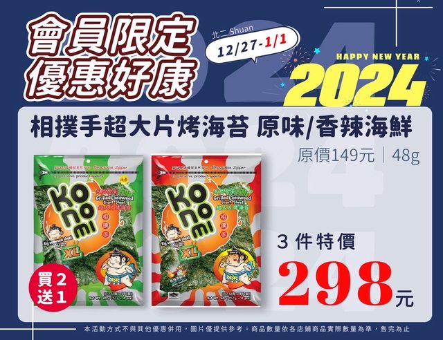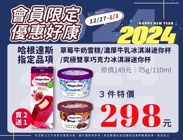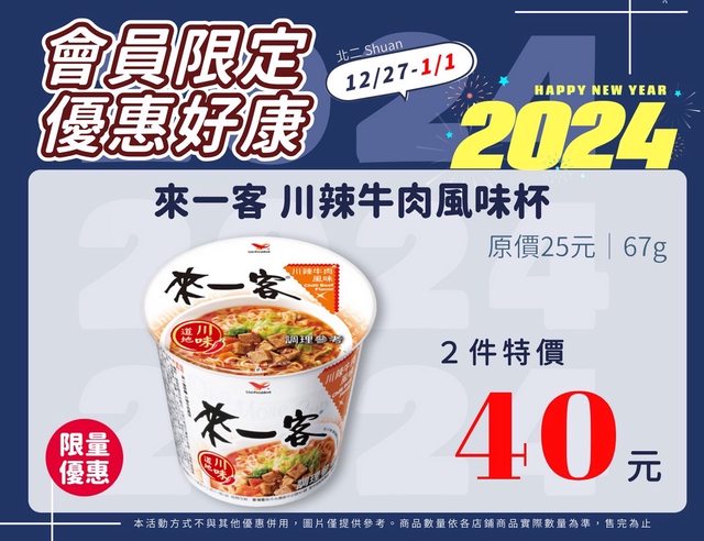 【活動名稱】:會員限時優惠 【便利商店/廠商名稱】:全家 【活動時間】:2023/12/27~2024/01/01 【活動內容】: