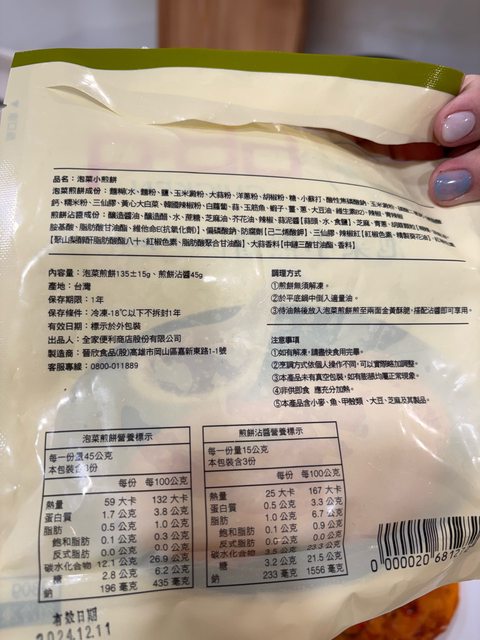 【規格/內容物/熱量】:59大卡*3(煎餅)