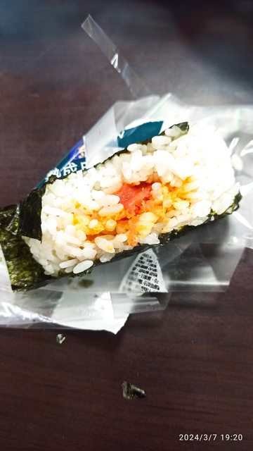 我運氣不錯 這一顆飯糰有吃到一小塊明太子