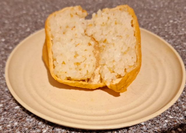 包著山葵拌飯的豆皮飯糰 比台灣小七之前那款號稱哇沙米口味的豆皮飯糰 這款真的是相