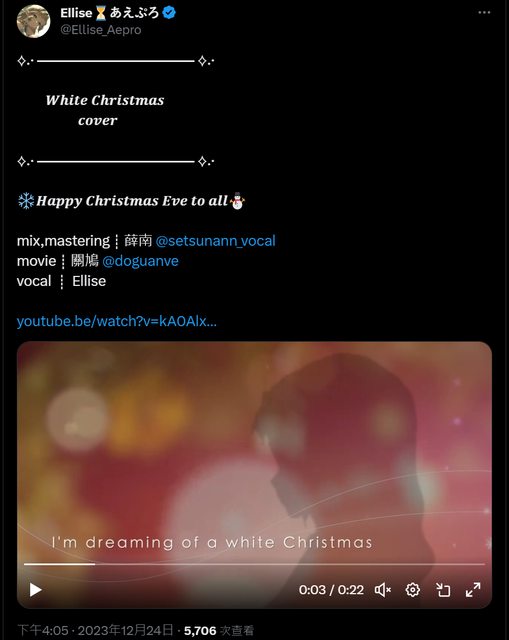 Ellise是日籍台V,唱歌好聽,聲音輕柔,聽起來滿舒服的