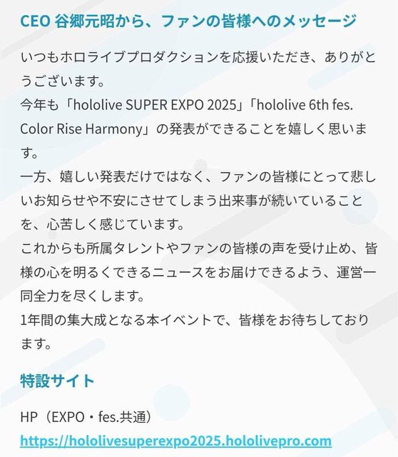 今年也非常高興看到「HOLOLIVE SUPER EXPO 2025」與「HOLOLIVE 6TH FES. COLOR RISE