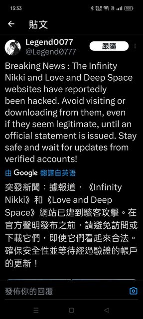 標題Re: [閒聊] 無限暖暖官網遭駭中