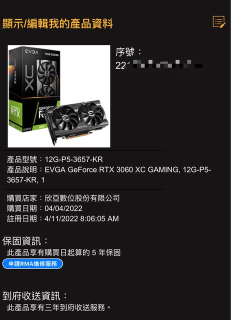標題[賣/全國/皆可] EVGA 3060 12GB