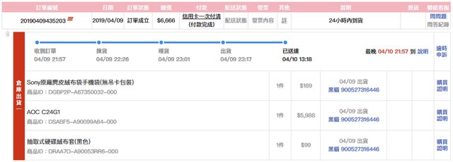 1.購買日期:2019/04/09 於PCHOME購買