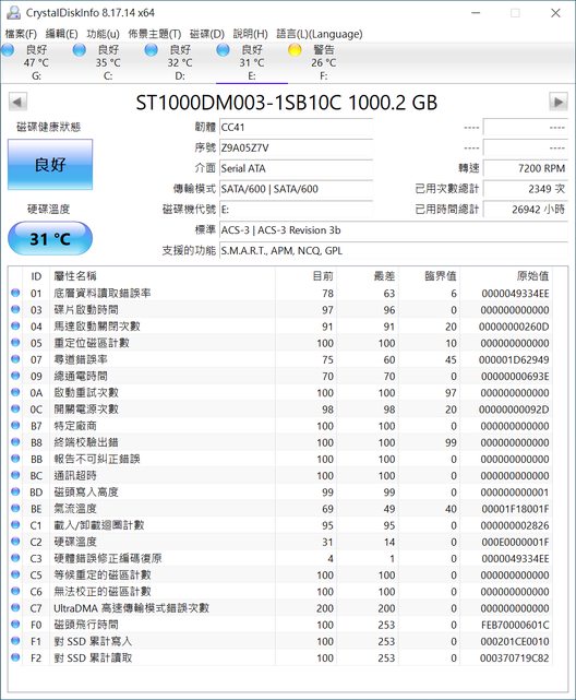 SSD2於2015/12購買,快死掉了(健康度如圖)可以當玩具玩