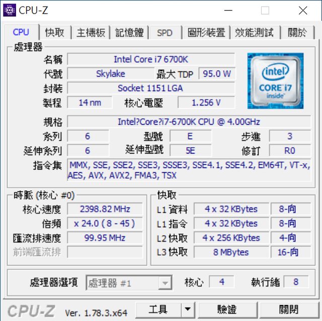 ◎硬體型號: 處理器 - Intel Core i7-6700K CPU @ 4GHz up to 4.2GHz