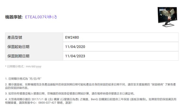 2.保固有無:透過序號可查詢