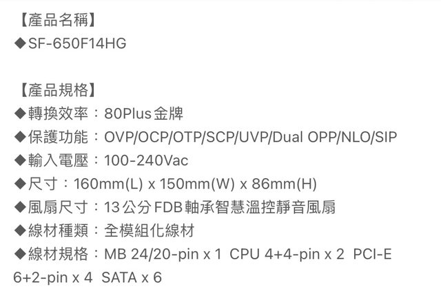 標題[賣/台北/皆可] 振華650w/80plus金牌電供