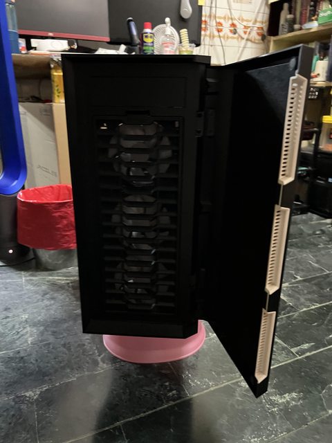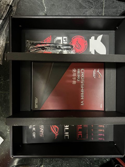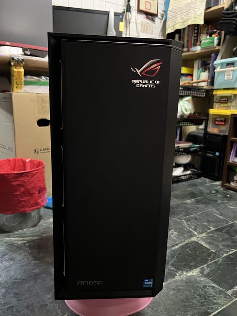 外觀大概九成新 有貼了一張ROG貼紙跟一張i5貼紙 螺絲配件盒在第一個硬碟架上
