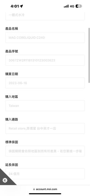 2.今年6.16購買 已延長保固 只上機一次後來換白龍換下 保固到2028
