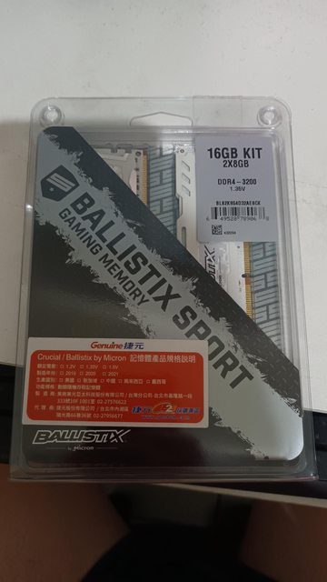 4.美光 DDR4 3200 競技版 8Gx2 (白)