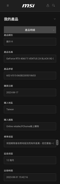 標題[賣/全國/皆可] 微星 RTX 4060Ti VENTUS 2X
