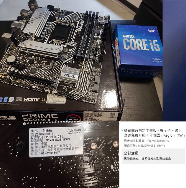 ◎硬體型號: i5-10400+ASUS B560M-A