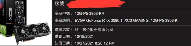 標題[賣/雙北/面交] evga 3080ti xc3 12g