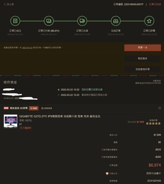 ◎硬體型號: GIGABYTE G27Q HDR400 電競螢幕 (27型/2K/144hz/1ms/IPS)
