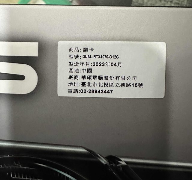 ◎硬體型號: 1.ASUS DUAL Rtx 4070