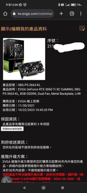 有寄信到客服確認2021/11月底出貨 保固3年到2024/11月底