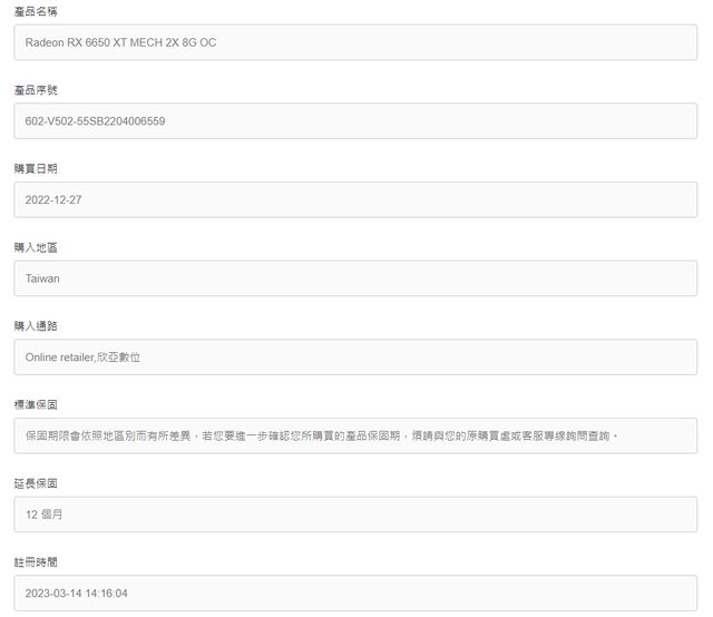 ◎硬體型號:MSI RX6650XT MECH 2X 8G OC (禁止販售未拆封之物品,贈品、獎品、RMA