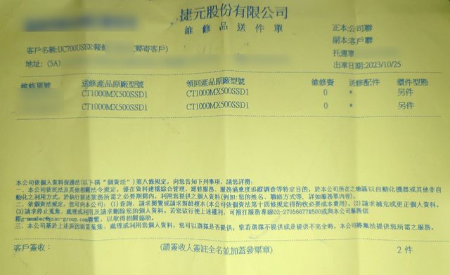 沒改善,故購入其他廠牌硬碟並送修。