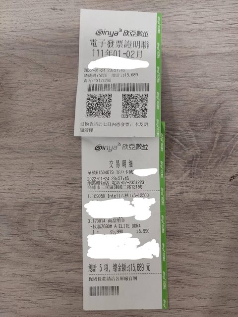 1.(2022/01/24購入,intel網站查保固至2025/03/29)