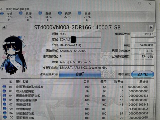 ◎硬體型號:Seagate IronWolf 4TB*2