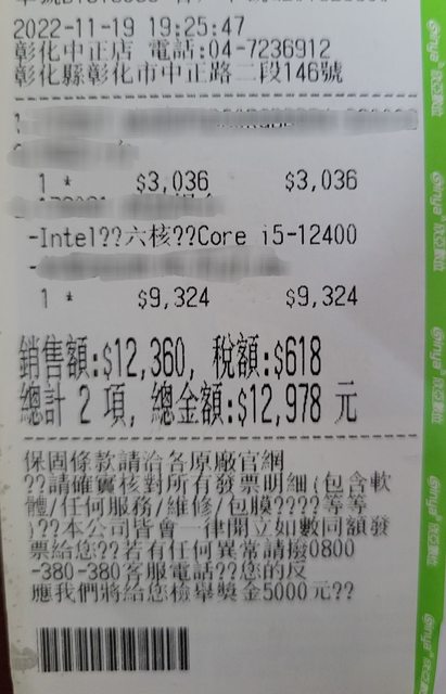 標題[賣/全國/皆可] I5-12400 盒裝完整
