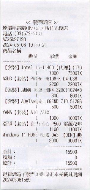 2.2024.05.08購買原價屋酷!PC套裝電腦內的電源,