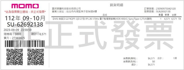 1.2023年9月9日自momo購入