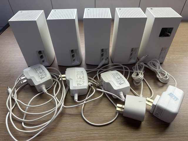 五台都可正常 Mesh WiFi 連線,可有線或是無線回程,出貨如圖片為主機+電源線。