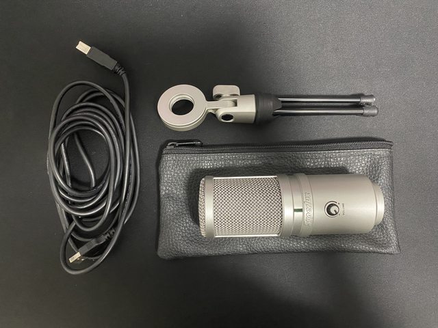 盒子以外都留著(麥克風本體、收納袋、麥克風轉接座、支架、USB線)