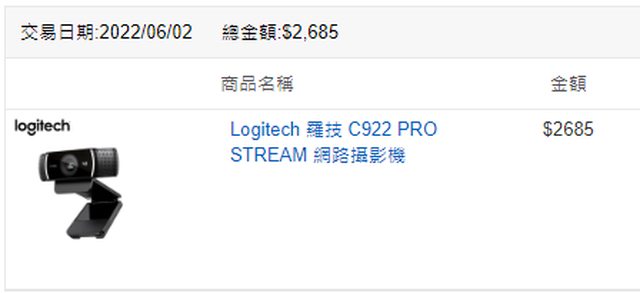 2.羅技 C922 網路攝影機