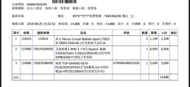 CPU: AMD R5 3600 (2019.08購買)