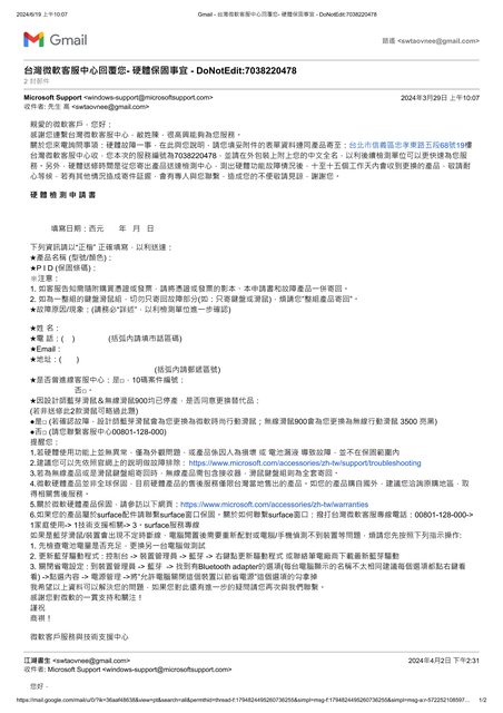 3. 使用約10個月時出現按鍵連點問題申請RMA,更換新品未拆 (可看照片上封條貼紙)