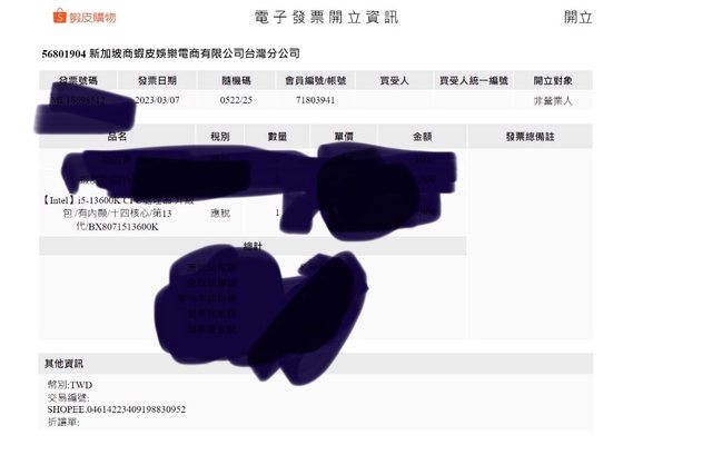 交易完成後附發票照片