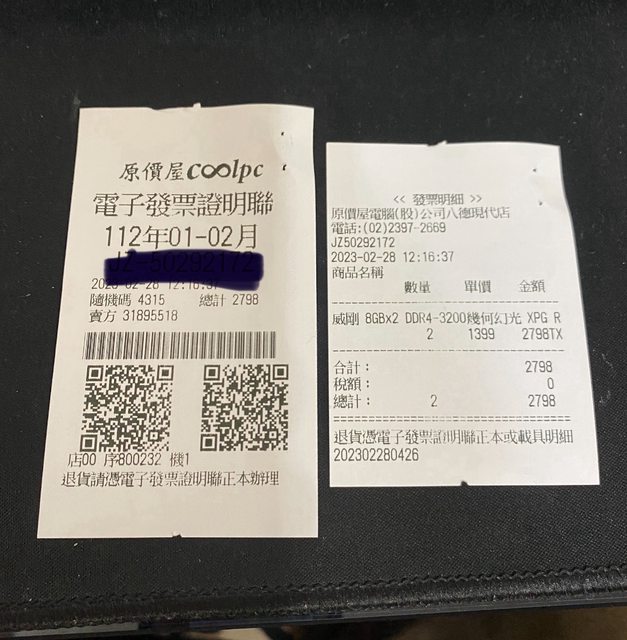 1.2023/3/7購入 三年保固(捷元)