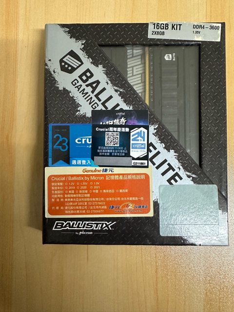 標題[賣/全國/寄送]美光 Ballistix DDR4 3600 8Gx2