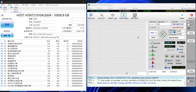 附上 6/13 日擷取之 SMART 資料以及 Victoria 全盤掃描狀態,無壞軌