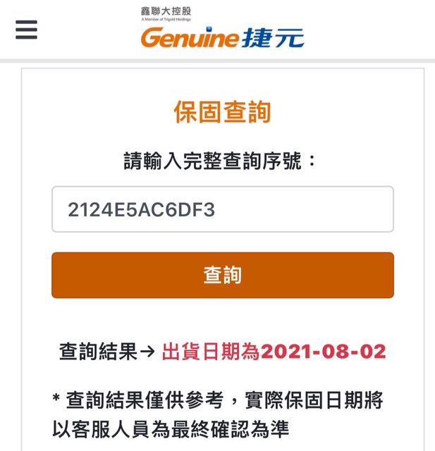 捷元查詢保固到2026/08/02