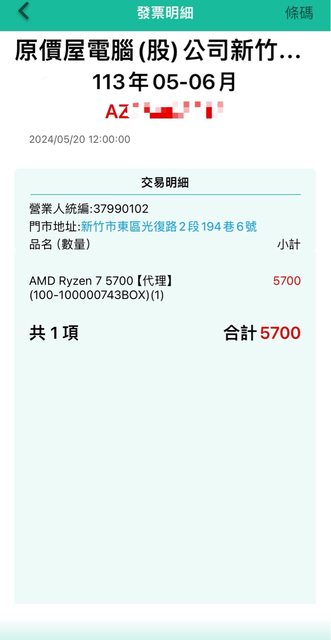 ◎硬體型號: AMD Ryzen 7 5700