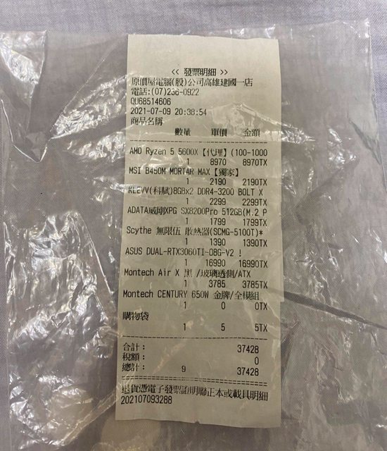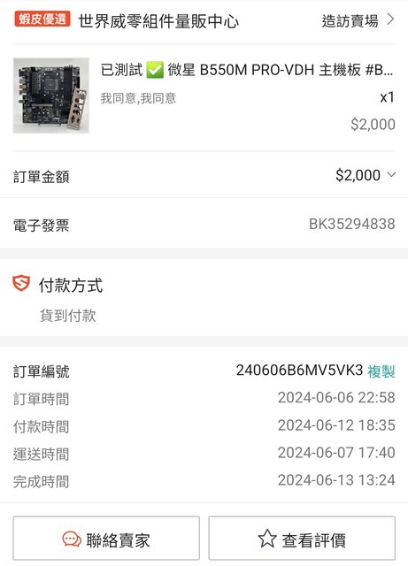 CPU:過保,2021/7/9購入,使用狀況正常,原廠風扇有使用過 散熱:過保,2021/7/9購入,使用狀況正常 主機板:2024/6/6在蝦皮買的二手品,視為無保固 記憶體:終生保,之前買的礦渣,找不到購買證明 SSD:過保,2021/7/9購入,使用狀況正常 顯示卡:Ptt購入,保固至2026年5月,前一手有挖礦,去年8月因為HDMI讀不到有去RMA,當 時回來散熱鰭片.擋板.接孔.散熱膏都換新了,現在功能正常 機殼:2024/6/7購入 電源:10年保,2021/8月購買的礦渣,但找不到發票,所以可能要從出廠日期算 螢幕:保固內,2021/8/6購入,螢幕顯示狀況正常,但這螢幕表層有點難顧,所以可能要自 己清一下,反應在價格上