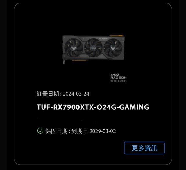 ◎硬體型號: TUF 7900XTX 24G