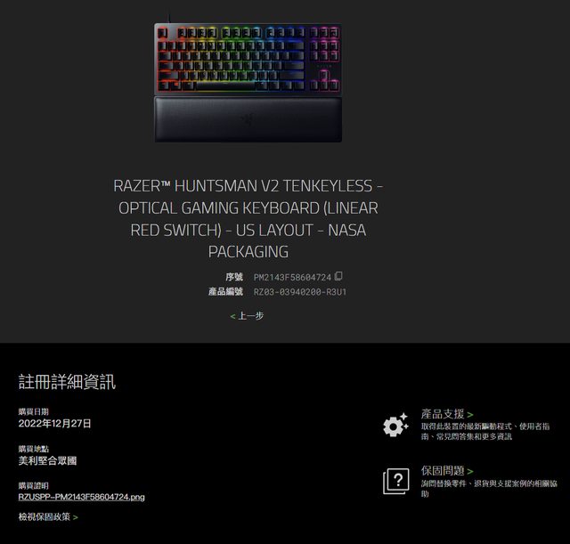 1. 2022/12/27 於美亞購買,保固2年