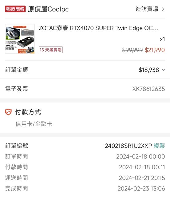 標題[賣/高雄/皆可] RTX 4070 SUPER