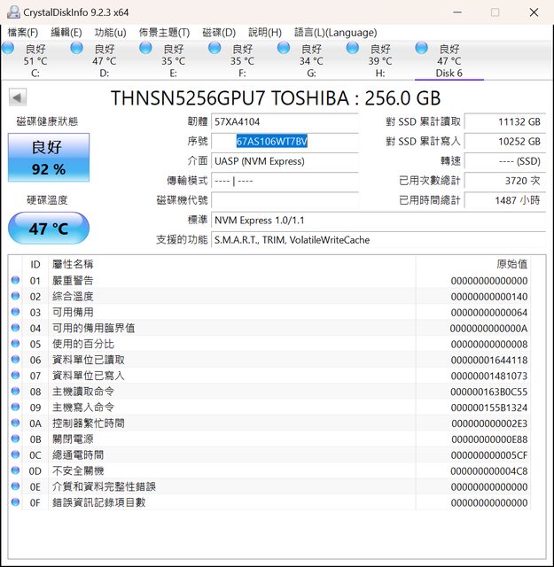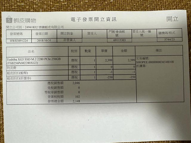 ◎硬體型號: 東芝 XG3 SSD 256GB M2 PCIE 2個