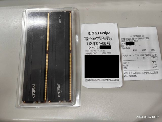 標題[賣/台南/面交] 美光 RAM DDR5 雙通24GB*2 6000