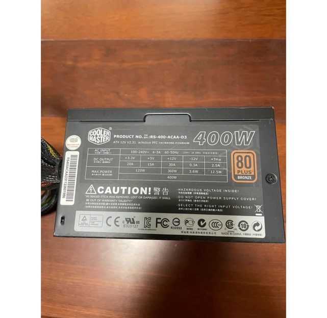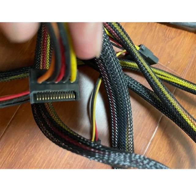 酷媽400W電源功能正常,不過在拆硬碟時有個插pin壞了(如圖)